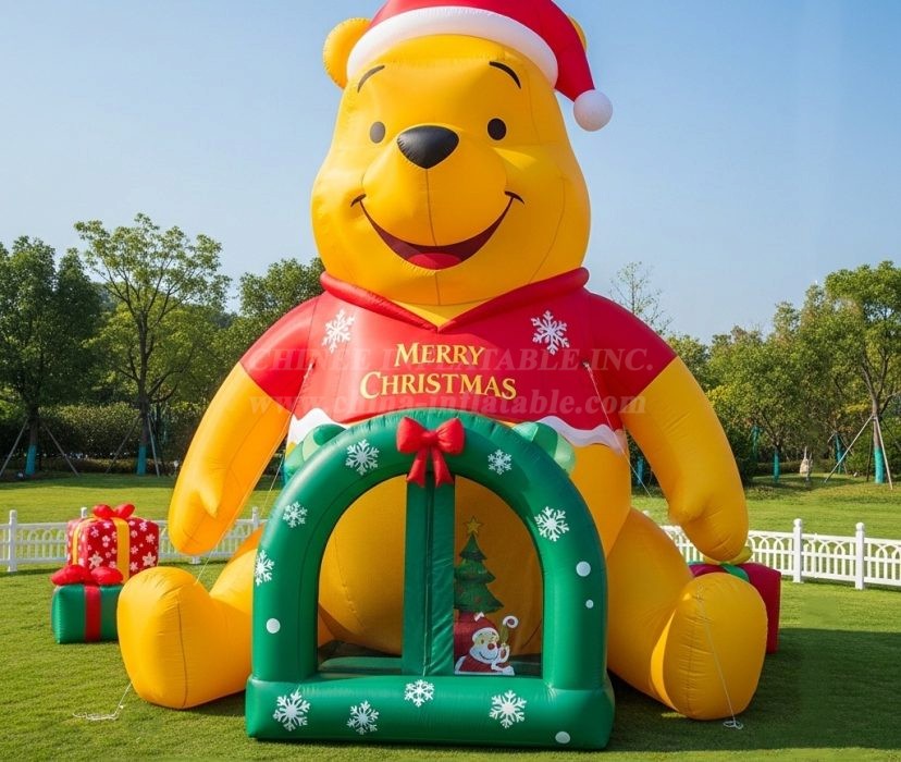 Bring festive charm to your event with our C1-746 Winnie the Pooh Christmas Inflatable Cartoon. This adorable holiday showpiece features a cheerful bear in a Santa hat and a bright red sweater that reads "Merry Christmas," complete with snowy accents and a gift-ready scene at the base. Designed as a decorative display rather than a ride or bouncer, it’s perfect for shopping malls, town squares, school fairs, theme parks, and brand activations looking to create an inviting Christmas atmosphere and memorable photo moments.