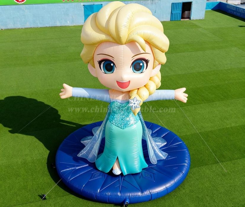 Crafted with meticulous attention to detail, this impressive inflatable model showcases Elsa in her iconic sparkling turquoise gown, complete with intricate snowflake patterns and flowing cape details. Her signature blonde braided hair and warm smile create an instantly recognizable figure that will captivate children and adults alike. The stable blue circular base ensures secure positioning while adding to the overall magical presentation.
