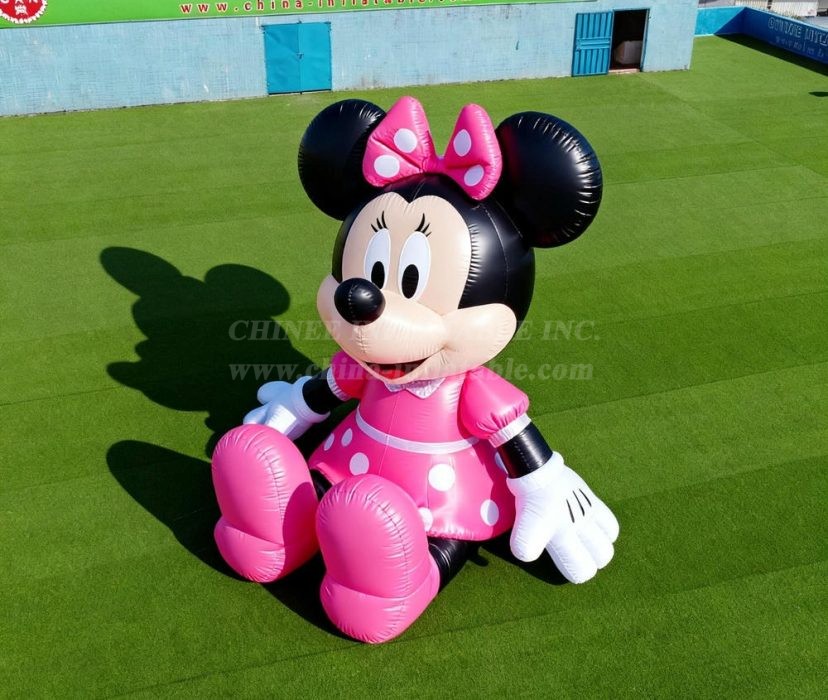 Bring the magic of Disney to your event with this enchanting Cartoon3-012 Minnie Mouse Inflatable Cartoon Character from Chinee Inflatables Inc. This spectacular oversized inflatable showcases everyone's favorite Disney mouse in her iconic pink polka dot dress, complete with her signature red bow and adorable round ears.