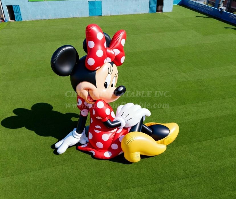 Transform your event into a magical Disney experience with the Cartoon3-020 Minnie Mouse Inflatable Model Product from Chinee Inflatables Inc. This stunning life-sized inflatable captures every beloved detail of Disney's iconic Minnie Mouse, featuring her signature red polka dot dress, matching bow, cheerful expression, and classic white gloves.