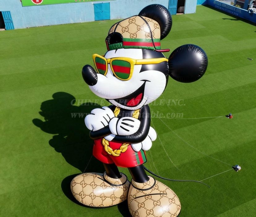 Make your event unforgettable with the Cartoon3-025 Designer Mickey Mouse Inflatable Model Product from Chinee Inflatables Inc.! This spectacular inflatable decoration features the beloved Mickey Mouse character styled with luxury designer accessories, including a premium patterned hat, matching designer shoes, trendy sunglasses, and gold chain accessories that give this classic character a fashionable modern twist.