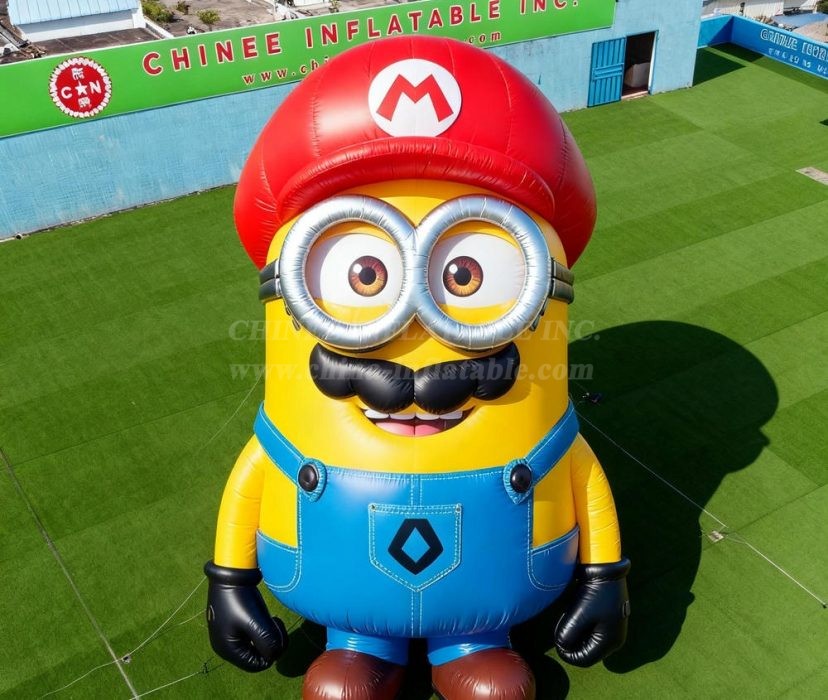 Bring double the fun to your event with this amazing Cartoon3-071 Super Mario Minion Inflatable Model Product from Chinee Inflatables Inc.! This unique and eye-catching inflatable combines two beloved characters - the lovable yellow Minion wearing Super Mario's iconic red hat with the classic 'M' logo.