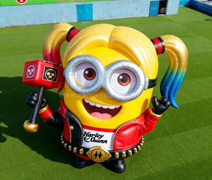 Transform your event space with this eye-catching Cartoon3-073 Minion Harley Quinn Inflatable Model Product from Chinee Inflatables Inc.! This unique promotional inflatable combines the beloved Minion character with the iconic Harley Quinn theme, creating an unforgettable attraction that's perfect for comic conventions, themed parties, and promotional events.