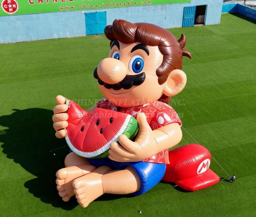 Bring the beloved world of Super Mario to your event with this spectacular inflatable Mario figure from Chinee Inflatables Inc.! This premium inflatable model product features the iconic plumber himself in his classic red and blue outfit, complete with his signature mustache and cap, sitting cross-legged while enjoying a delicious slice of watermelon.