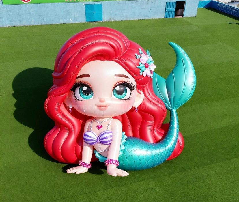 Perfectly designed for promotional displays, party decorations, and special events, this charming mermaid character stands out with her sweet anime-inspired facial features, delicate flower hair accessory, and shimmering purple seashell bikini top. The vibrant colors and incredible attention to detail make this inflatable a true showstopper that will captivate audiences of all ages.