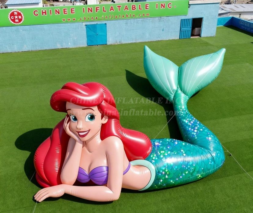 Dive into an enchanting underwater adventure with our spectacular Cartoon3-135 Disney Little Mermaid Ariel Inflatable Model Product! This stunning giant inflatable brings the beloved Disney princess Ariel to life in magnificent detail, featuring her iconic flowing red hair, charming smile, and shimmering teal mermaid tail that sparkles with magical underwater effects.