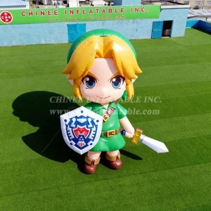 Bring the legendary hero to life with this spectacular Cartoon3-136 Link Legend of Zelda Inflatable Model Product from Chinee Inflatables Inc.! This impressive inflatable recreation features the beloved video game character Link in his iconic green tunic and pointed hat, complete with his legendary Master Sword and Hylian Shield.