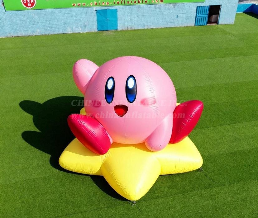 Bring the beloved Nintendo character Kirby to life with this incredible Cartoon3-138 Kirby Nintendo Character Inflatable Model Product from Chinee Inflatables Inc.! This eye-catching promotional display features the iconic pink puffball hero in his classic pose, complete with his signature blue eyes, cheerful red smile, and adorable red feet, all while sitting majestically on his famous yellow Warp Star.