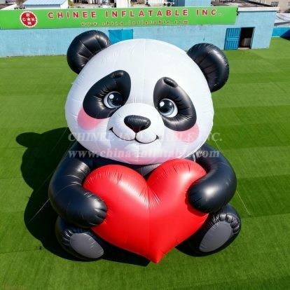 Transform your event space with this adorable Cartoon3-144 Panda Heart Inflatable Model Product from Chinee Inflatables Inc. This charming inflatable features a loveable giant panda with big expressive eyes and rosy cheeks, tenderly holding a bright red heart that symbolizes love and affection.