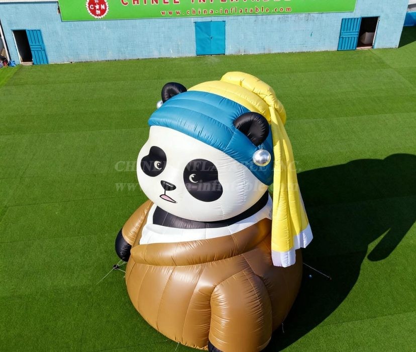 Bring joy and excitement to any event with the Cartoon3-149 Panda Character Inflatable Model Product from Chinee Inflatables Inc.! This adorable giant inflatable panda features an eye-catching design with a colorful blue and yellow headwrap that makes it perfect for themed parties, promotional events, and special celebrations.