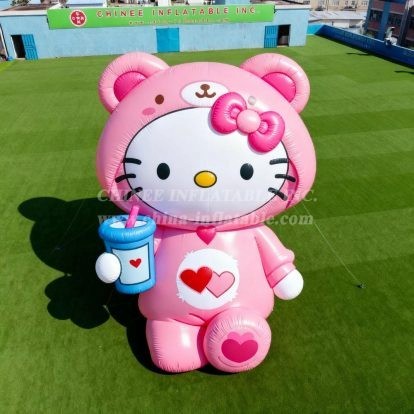Transform your event space with this adorable Cartoon3-163 Hello Kitty Bear Costume Inflatable Model Product from Chinee Inflatables Inc. This charming oversized inflatable features the beloved Hello Kitty character dressed in an enchanting pink teddy bear costume, complete with cute bear ears and a sweet pink bow. The detailed design includes Hello Kitty's signature white face with black whiskers, yellow nose, and iconic expression, all nestled within the cozy bear hood.