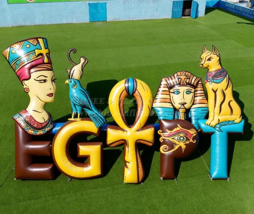 Step into the mystical world of ancient Egypt with this spectacular Egypt Theme Inflatable Model Product from Chinee Inflatables Inc. This impressive decorative display features beautifully crafted inflatable letters spelling 'EGYPT' adorned with authentic Egyptian cultural elements that will transport your guests back to the time of pharaohs and pyramids.