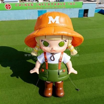 Transform your event space with the Cartoon3-196 Adventure Kid Mascot Inflatable Model Product from Chinee Inflatables Inc., your trusted partner in premium inflatable manufacturing since 1998. This charming oversized inflatable features an adorable cartoon character dressed for outdoor adventures, complete with a distinctive orange safari hat marked with 'M', bright green overalls with orange suspenders, and sturdy brown hiking boots.