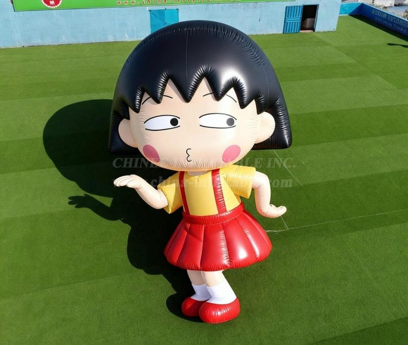 Bring beloved anime charm to your event with the Cartoon3-198 Chibi Maruko-chan Inflatable Cartoons from Chinee Inflatables Inc. This adorable oversized inflatable perfectly captures the iconic Japanese schoolgirl character with her signature black bob haircut, rosy cheeks, and classic yellow shirt with red skirt ensemble.