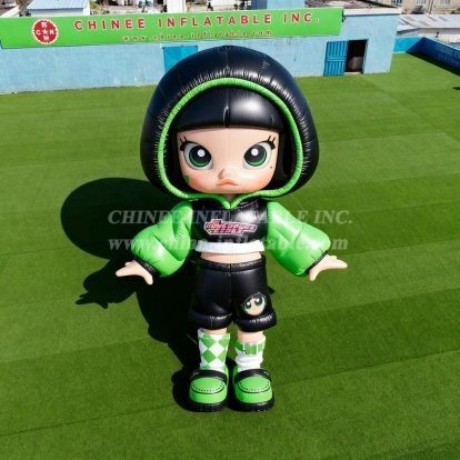 Crafted with meticulous attention to detail, this impressive inflatable showcases a charming character with large expressive green eyes, rosy cheeks, and a friendly demeanor that appeals to audiences of all ages. The character sports a trendy green and black outfit complete with decorative elements and stylish footwear, making it perfect for modern events and promotional activities.