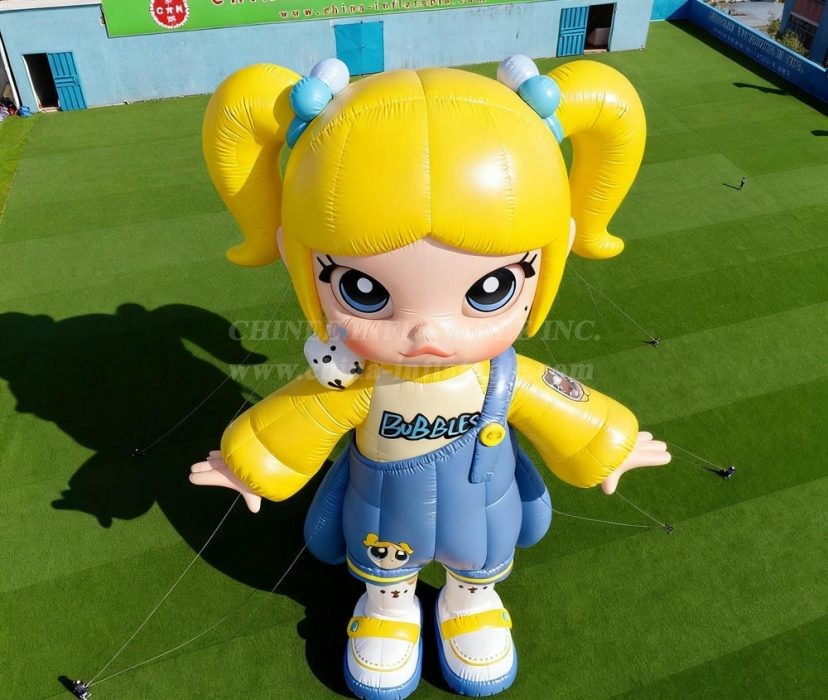 Transform your event space with the delightful Cartoon3-203 Blonde Pigtail Girl Inflatable Model Product from Chinee Inflatables Inc.! This charming oversized inflatable figure features an adorable cartoon character with bright yellow pigtails, sparkling blue eyes, and a sweet pink outfit with blue overalls. Standing tall and proud, this eye-catching inflatable decoration is perfect for creating magical atmospheres at children’s parties, promotional events, shopping centers, and special celebrations.