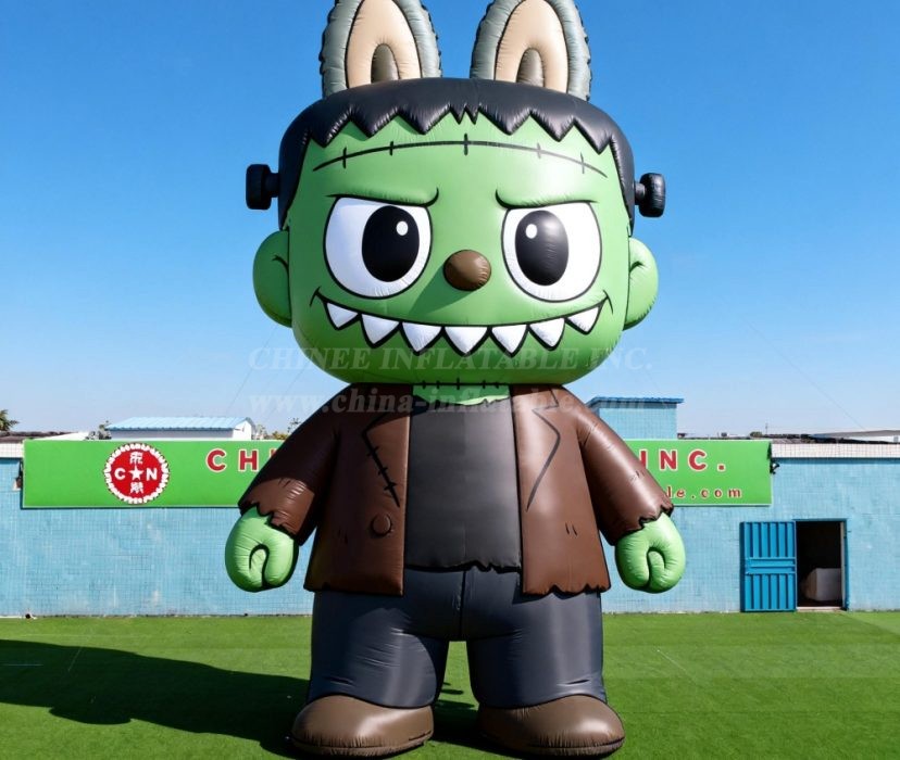 Crafted with meticulous attention to detail, this inflatable cartoon showcases oversized bunny ears adding a whimsical twist to the traditional monster design, dressed in a brown jacket and dark pants complete with sturdy boots. The character's large expressive eyes and playful smile make it perfect for family-friendly events while maintaining that unmistakable Halloween appeal.