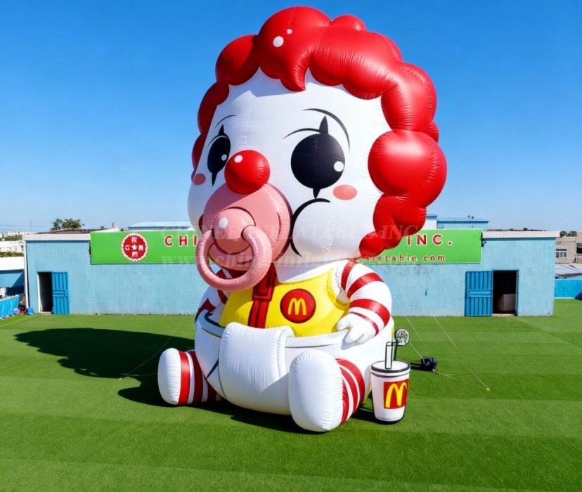 Manufactured with premium-quality materials by Chinee Inflatables, established in 1998 as China's leading inflatable manufacturer, this spectacular inflatable model stands tall as the perfect promotional tool for restaurants, grand openings, festivals, and special events. The charming baby clown sits comfortably with a branded yellow bib and holds a signature drink cup, making it ideal for fast-food chain promotions and family-friendly marketing campaigns.