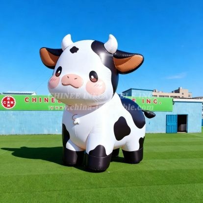 Bring charm and whimsy to your next event with this delightful Cartoon3-256 Adorable Cow Inflatable Model Product from Chinee Inflatables Inc. This oversized inflatable cow features an irresistibly cute design with classic black and white spotted markings, sweet pink cheeks, and warm brown inner ears that create an inviting and friendly appearance. Standing prominently with its cheerful expression and waving hoof, this inflatable is perfect for attracting attention and creating memorable photo opportunities.