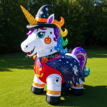 Bring spooky sparkle to your seasonal displays with the Cartoon3-271 Halloween Unicorn from Chinee Inflatables. This vibrant inflatable features a cheerful unicorn dressed in a witchy hat, starry cape, and friendly jack-o’-lantern accents—perfect for eye‑catching decoration at autumn festivals, neighborhood yard scenes, school events, and retail entrances. As an Inflatable Cartoons product, it’s designed for visual impact rather than bouncing, making it ideal when you need a stand‑out centerpiece that sets the mood quickly and safely.