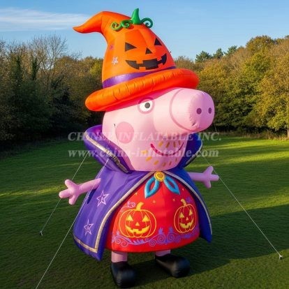 Bring playful Halloween magic to your event with the Cartoon3-420 Peppa Pig Halloween Inflatable Cartoon from Chinee Inflatables Inc. This giant decorative character features a friendly pig dressed in a witch-style hat and cape with cheerful pumpkin graphics, creating an eye-catching focal point for parks, shopping centers, schools, fairs, and night-time festivals. Designed as a display inflatable (not for bouncing or sliding), it delivers maximum visual impact with minimal setup time.