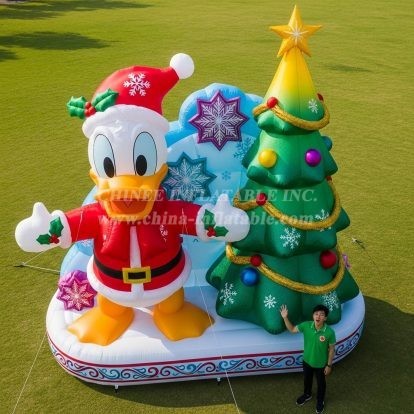 Bring holiday magic to your venue with the Cartoon3-541 Donald Duck Christmas Theme Inflatable Cartoon by Chinee Inflatables Inc. This eye‑catching display features a cheerful Donald Duck dressed in a festive red outfit beside a beautifully decorated Christmas tree, set against a backdrop of icy snowflakes. Designed as a decoration piece (not for bouncing), it’s perfect for creating a warm seasonal atmosphere at malls, town squares, theme parks, school fairs, and winter markets.