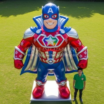 Make a bold statement at your next event with the Cartoon3-567 Superhero Inflatable Cartoon by Chinee Inflatables. This towering, full‑body hero figure features vibrant red, blue, and silver colors, star motifs, and a heroic cape, standing proudly on a stable base for eye‑catching display. It’s designed as a decoration piece (not for bouncing), perfect for entrances, photo ops, brand activations, parades, school fairs, comic‑themed nights, winter festivals, and rental lineups.