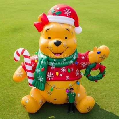 Bring holiday cheer to any venue with the Cartoon3-621 Christmas Bear Inflatable Cartoons. This eye‑catching decorative inflatable features a friendly bear dressed in a festive Santa hat and scarf, accented with snowflake graphics, string lights, and a candy cane and wreath for unmistakable Christmas spirit. Designed as a display piece rather than a ride, it excels as a photo backdrop and crowd‑stopper for malls, town squares, corporate events, school fairs, and outdoor festivals.