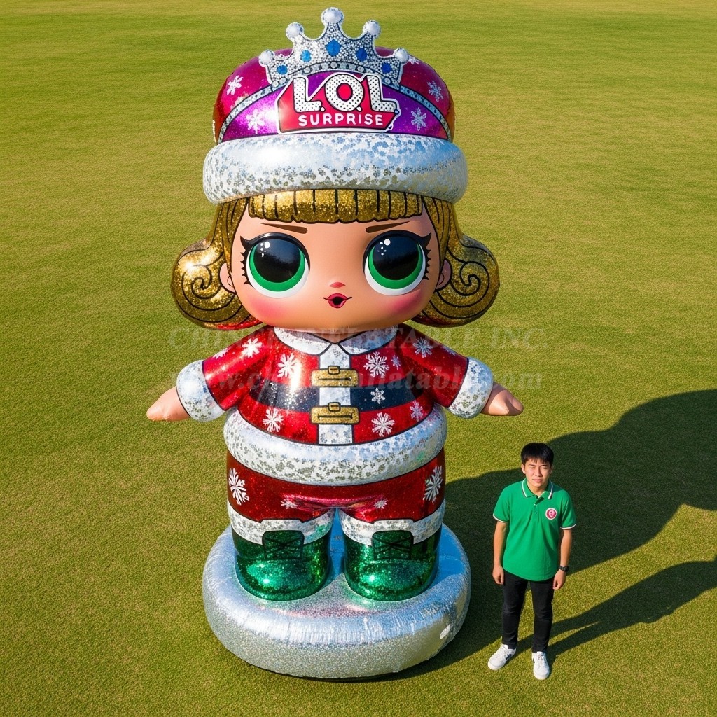 Bring eye‑catching charm to your event with our Cartoon3-679 L.O.L. SURPRISE Inflatable Cartoons display. Designed as a larger‑than‑life doll dressed in a festive red and silver outfit with snowflake accents, this piece is perfect for Christmas fairs, winter markets, shopping mall promotions, school events, and photo opportunities. The standing statue format is decoration‑only, making it ideal for entrances, stages, and open lawns where you want strong visual impact without ride activity.