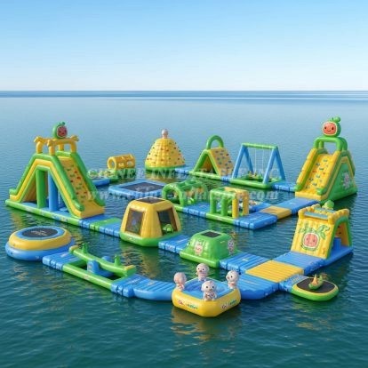 Chinee utilizza materiale personalizzato anti-UV e resistente al calore che aumenta la durata del parco acquatico galleggiante del 30%-50% rispetto al materiale normale che la maggior parte dei fornitori ha utilizzato, specialmente in aree con forte esposizione ai raggi UV e alte temperature.