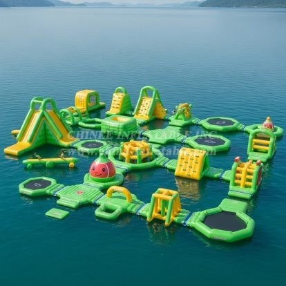 Chinee utilizza materiale personalizzato anti-UV e resistente al calore che aumenta la durata del parco acquatico galleggiante del 30%-50% rispetto al materiale normale che la maggior parte dei fornitori ha utilizzato, specialmente in aree con forte esposizione ai raggi UV e alte temperature.