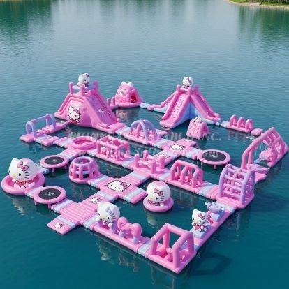 Chinee utilizza materiale personalizzato anti-UV e resistente al calore che aumenta la durata del parco acquatico galleggiante del 30%-50% rispetto al materiale normale che la maggior parte dei fornitori ha utilizzato, specialmente in aree con forte esposizione ai raggi UV e alte temperature.