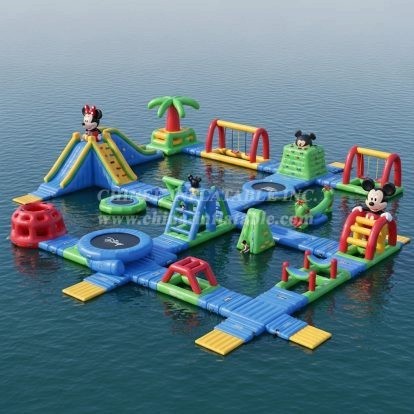 Chinee utilizza materiale personalizzato anti-UV e resistente al calore che aumenta la durata del parco acquatico galleggiante del 30%-50% rispetto al materiale normale che la maggior parte dei fornitori ha utilizzato, specialmente in aree con forte esposizione ai raggi UV e alte temperature.