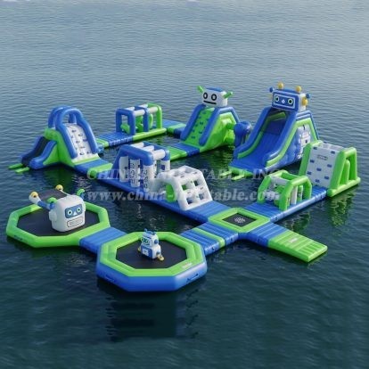 Chinee utilizza materiale personalizzato anti-UV e resistente al calore che aumenta la durata del parco acquatico galleggiante del 30%-50% rispetto al materiale normale che la maggior parte dei fornitori ha utilizzato, specialmente in aree con forte esposizione ai raggi UV e alte temperature.