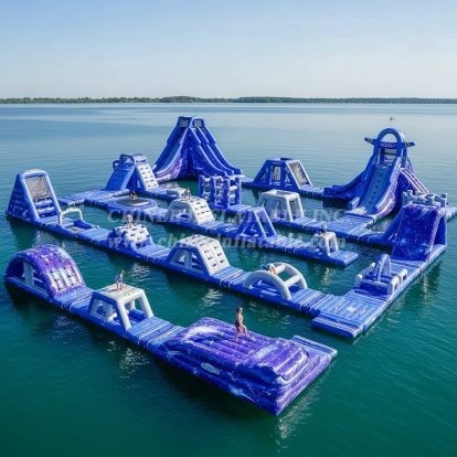 Chinee utilizza materiale personalizzato anti-UV e resistente al calore che aumenta la durata del parco acquatico galleggiante del 30%-50% rispetto al materiale normale che la maggior parte dei fornitori ha utilizzato, specialmente in aree con forte esposizione ai raggi UV e alte temperature.