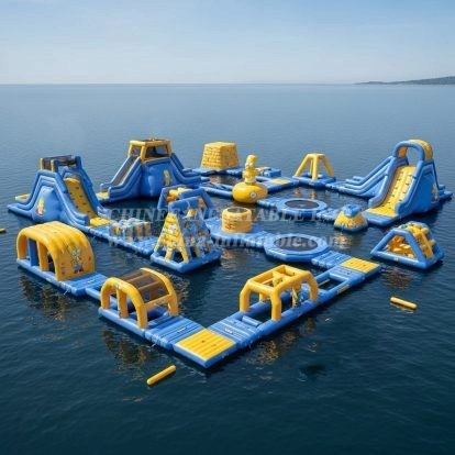 Chinee utilizza materiale personalizzato anti-UV e resistente al calore che aumenta la durata del parco acquatico galleggiante del 30%-50% rispetto al materiale normale che la maggior parte dei fornitori ha utilizzato, specialmente in aree con forte esposizione ai raggi UV e alte temperature.