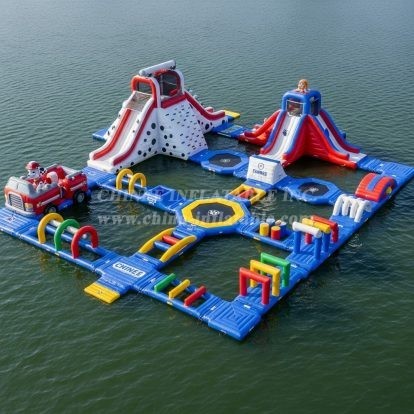Make a splash with the S397 PAW Patrol Theme Water Park from Chinee Inflatables. This vibrant floating adventure course brings family‑friendly excitement to lakes, marinas, and waterfront resorts. Designed around a playful rescue motif, it features multiple water slides, a spotted climbing mountain, balance beams, hurdles, and jump pads that link together into a thrilling circuit. Kids and adults can climb, slide, jump, and race across the pathways while lifelike fire‑rescue details spark imaginative play.