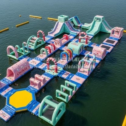 Chinee utilizza materiale personalizzato anti-UV e resistente al calore che aumenta la durata del parco acquatico galleggiante del 30%-50% rispetto al materiale normale che la maggior parte dei fornitori ha utilizzato, specialmente in aree con forte esposizione ai raggi UV e alte temperature.