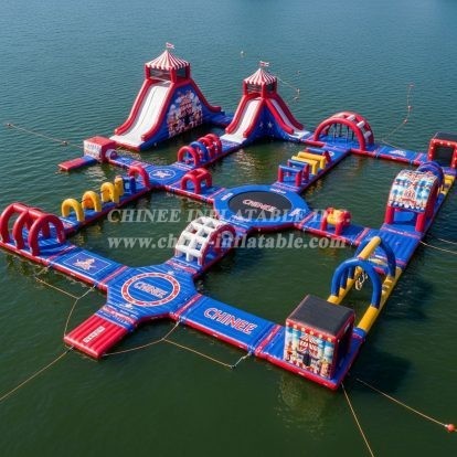 Chinee utilizza materiale personalizzato anti-UV e resistente al calore che aumenta la durata del parco acquatico galleggiante del 30%-50% rispetto al materiale normale che la maggior parte dei fornitori ha utilizzato, specialmente in aree con forte esposizione ai raggi UV e alte temperature.