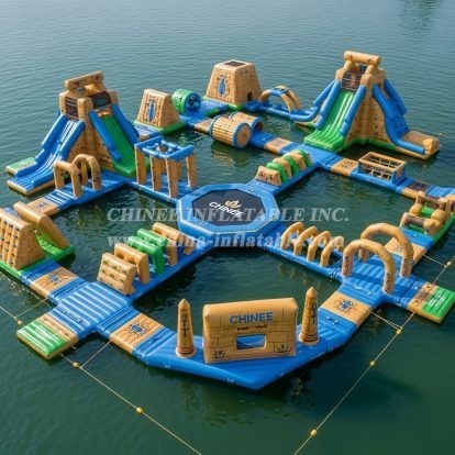 Chinee utilizza materiale personalizzato anti-UV e resistente al calore che aumenta la durata del parco acquatico galleggiante del 30%-50% rispetto al materiale normale che la maggior parte dei fornitori ha utilizzato, specialmente in aree con forte esposizione ai raggi UV e alte temperature.