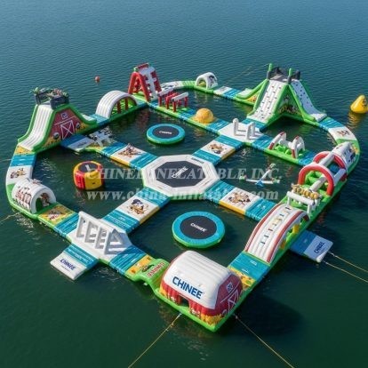 Chinee utilizza materiale personalizzato anti-UV e resistente al calore che aumenta la durata del parco acquatico galleggiante del 30%-50% rispetto al materiale normale che la maggior parte dei fornitori ha utilizzato, specialmente in aree con forte esposizione ai raggi UV e alte temperature.