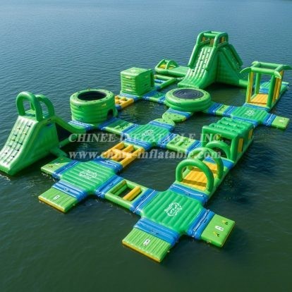 Chinee utilizza materiale personalizzato anti-UV e resistente al calore che aumenta la durata del parco acquatico galleggiante del 30%-50% rispetto al materiale normale che la maggior parte dei fornitori ha utilizzato, specialmente in aree con forte esposizione ai raggi UV e alte temperature.
