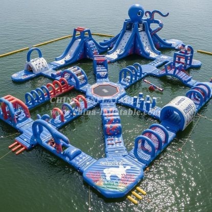 Chinee utilizza materiale personalizzato anti-UV e resistente al calore che aumenta la durata del parco acquatico galleggiante del 30%-50% rispetto al materiale normale che la maggior parte dei fornitori ha utilizzato, specialmente in aree con forte esposizione ai raggi UV e alte temperature.