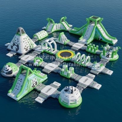 Chinee utilizza materiale personalizzato anti-UV e resistente al calore che aumenta la durata del parco acquatico galleggiante del 30%-50% rispetto al materiale normale che la maggior parte dei fornitori ha utilizzato, specialmente in aree con forte esposizione ai raggi UV e alte temperature.