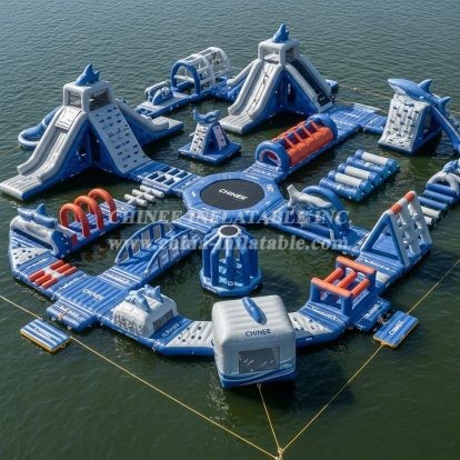 Chinee utilizza materiale personalizzato anti-UV e resistente al calore che aumenta la durata del parco acquatico galleggiante del 30%-50% rispetto al materiale normale che la maggior parte dei fornitori ha utilizzato, specialmente in aree con forte esposizione ai raggi UV e alte temperature.