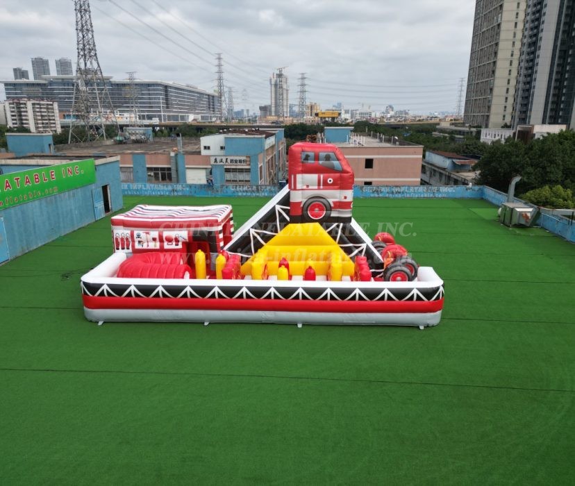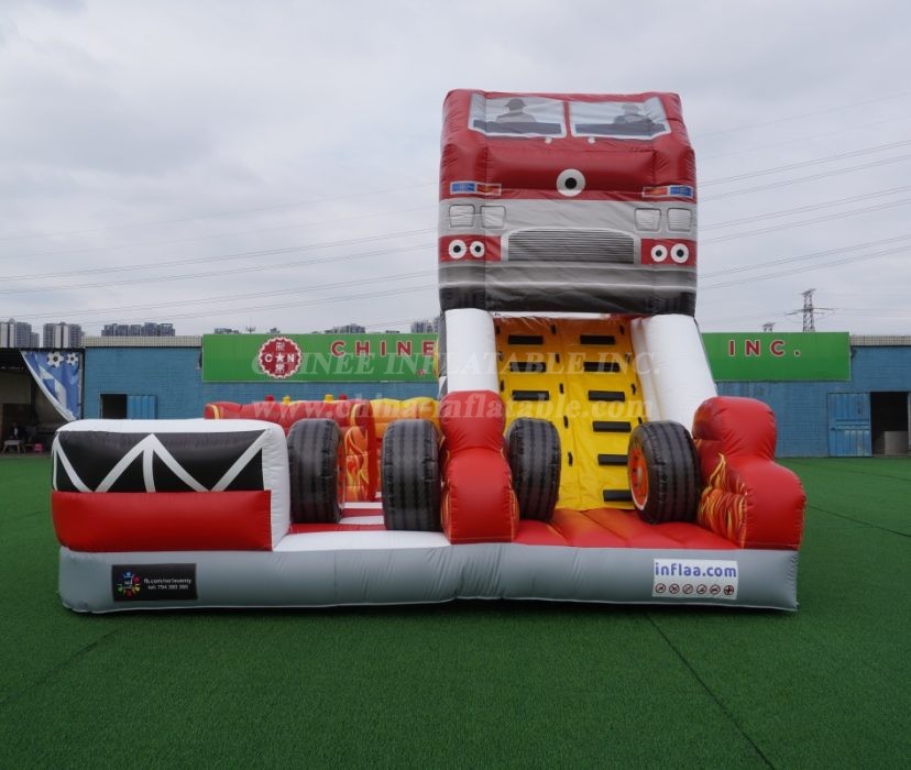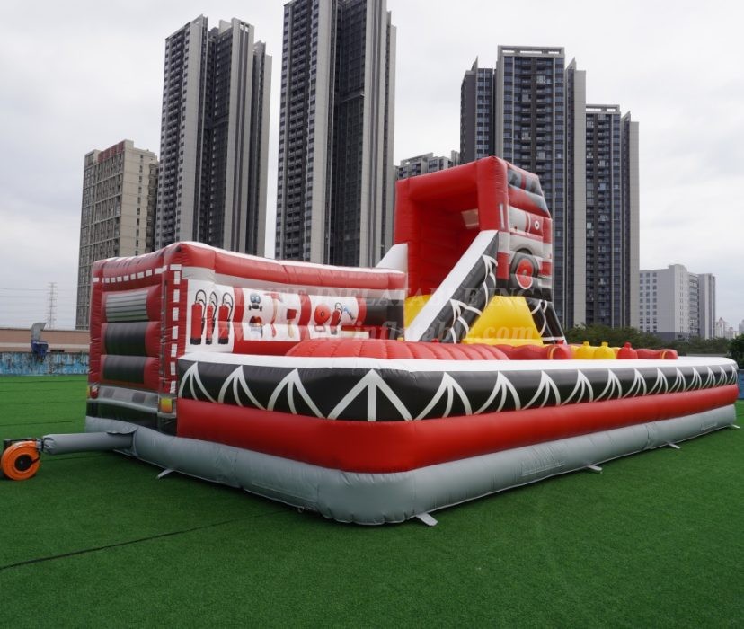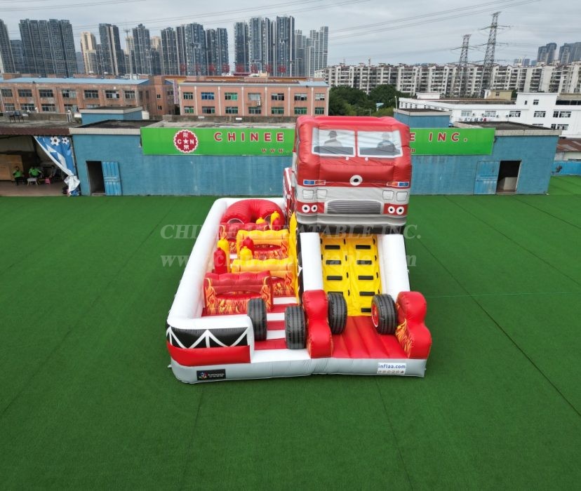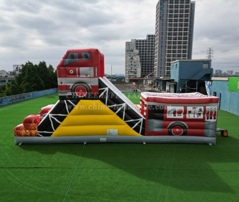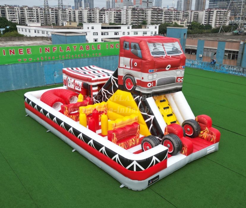 Sound the alarm for the ultimate playtime adventure! Introducing the incredible Fire Truck Themed Inflatable Obstacle Course, engineered by Chinee Inflatables!