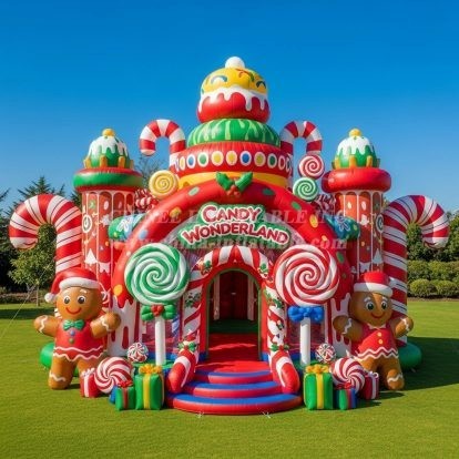 Step into the sweetest celebration with the Candy Wonderland Inflatable Bouncer from Chinee Inflatables. Designed as a festive gingerbread-style house wrapped in candy canes, lollipops, and gift accents, this eye-catching unit instantly becomes the centerpiece of any event. The wide arched entrance invites kids to jump into a roomy bounce area, while vivid colors and playful 3D details create an immersive holiday atmosphere perfect for photo moments and nonstop fun.
