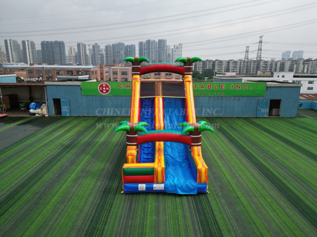 This slide is the ultimate paradise party starter. Decorated with vibrant, 3D inflatable palm trees, it features a true dual-lane design—two separate climbing lanes and two separate sliding lanes. It’s built for non-stop, side-by-side racing action and brings a touch of the tropics to any event.