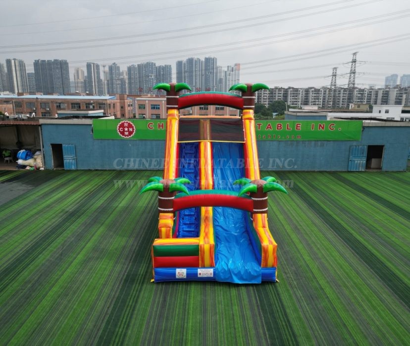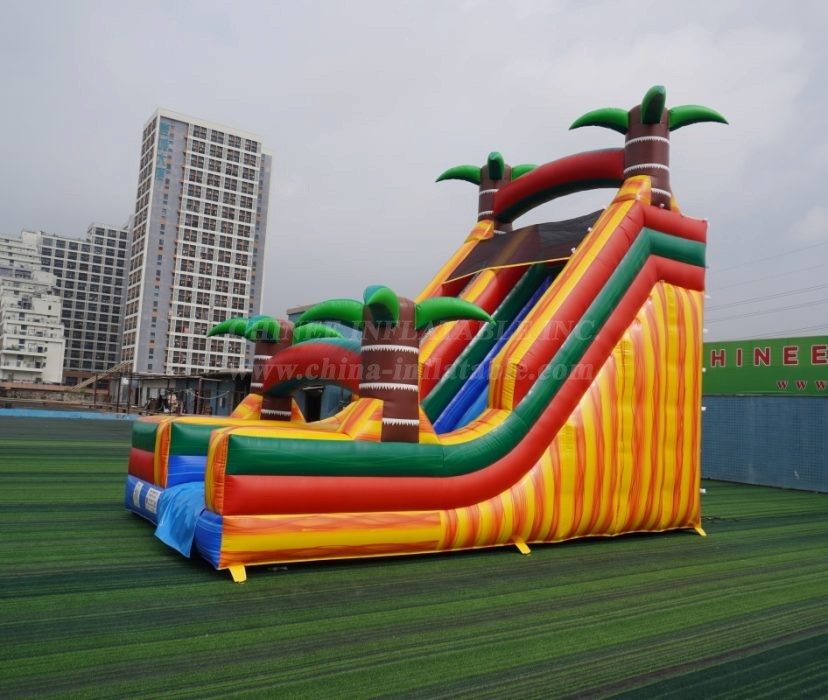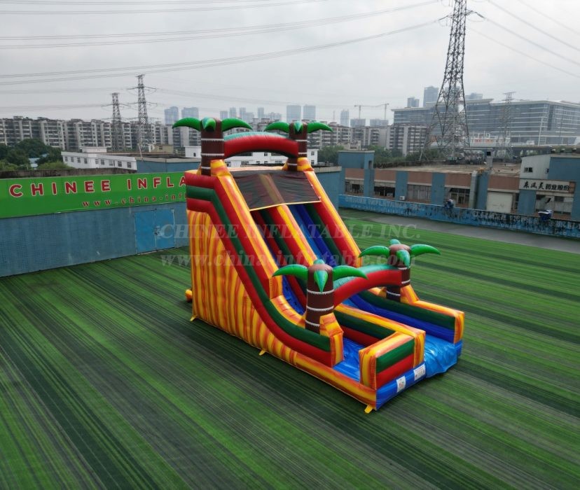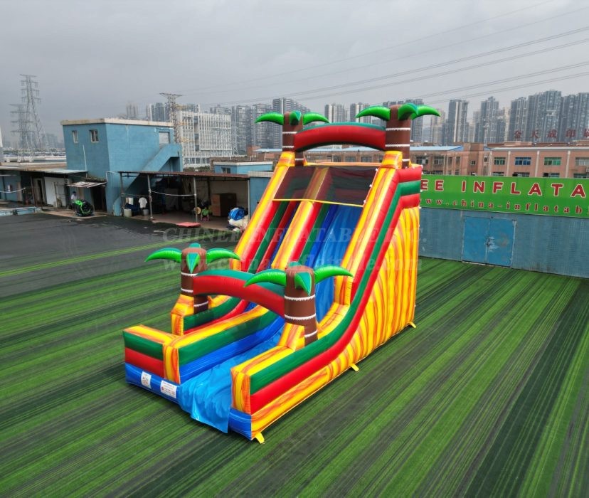 This slide is the ultimate paradise party starter. Decorated with vibrant, 3D inflatable palm trees, it features a true dual-lane design—two separate climbing lanes and two separate sliding lanes. It’s built for non-stop, side-by-side racing action and brings a touch of the tropics to any event.