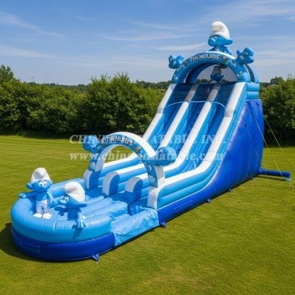 T8-7557 The Smurfs Theme Inflatable Water Slide